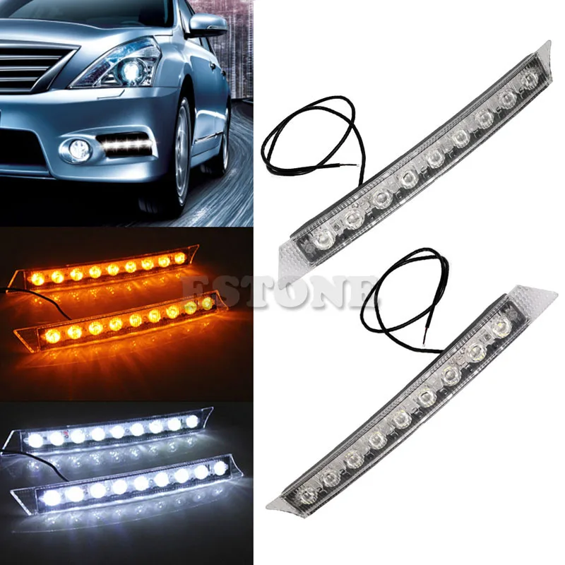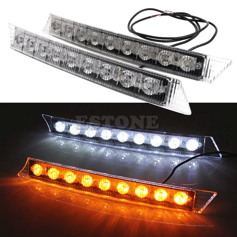 awesome Auto LED Lights 2x 9LEDs Daylight Daytime Running Driving DRL LED Light Yellow Turn Signals Car Ext