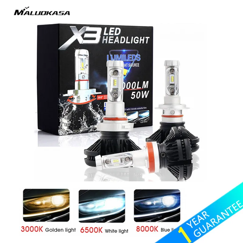 price reduction MALUOKASA 2PCs X3 ZES H4 H7 LED Car Headlight Bulb 3000K/6500K/8000K Yellow White Ice Blue Lamp H11