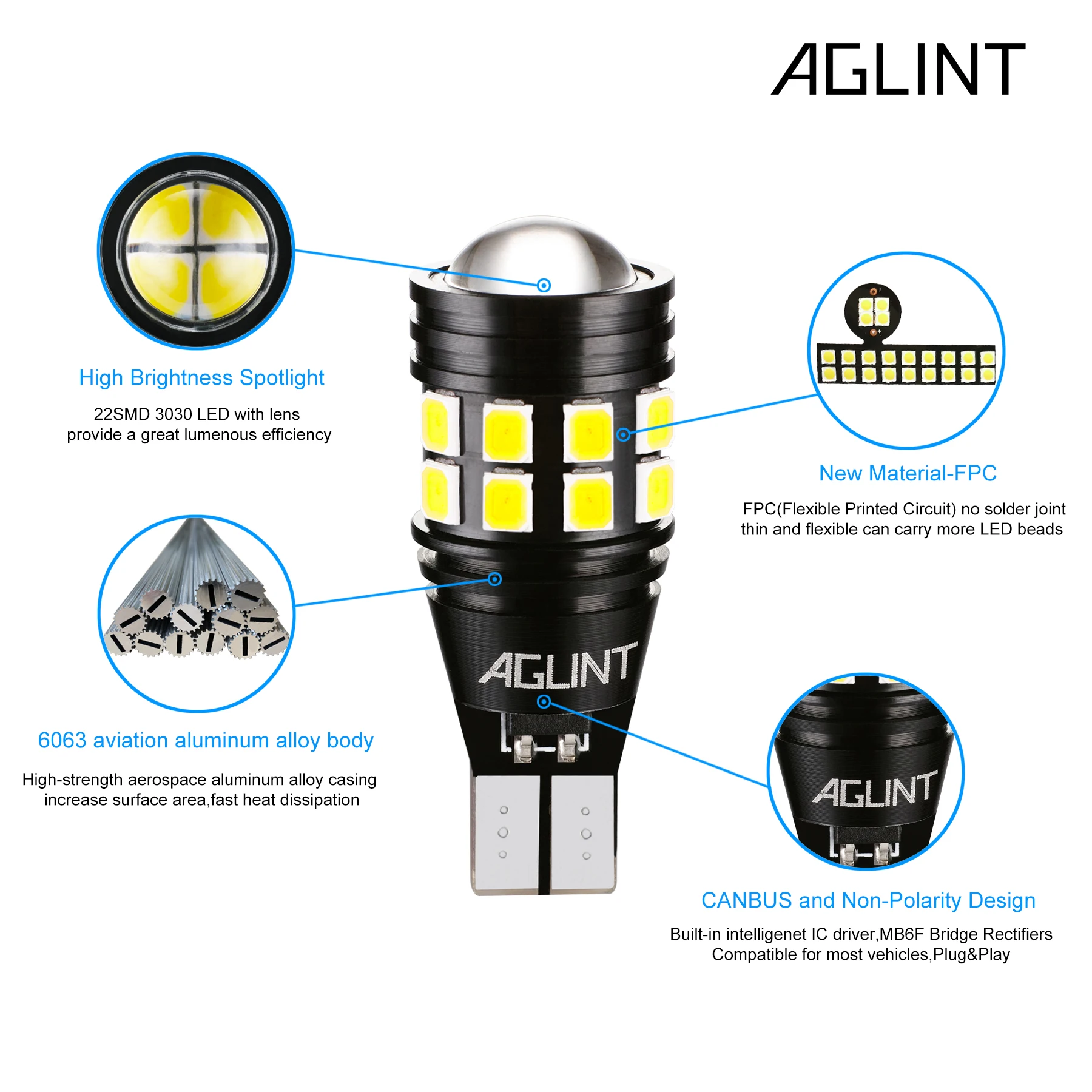 Best AGLINT 2PCS T15 W16W LED Car Bulbs CANBUS Error Free 3030 SMD 22 LEDs 1000LM Car Parking Light Back