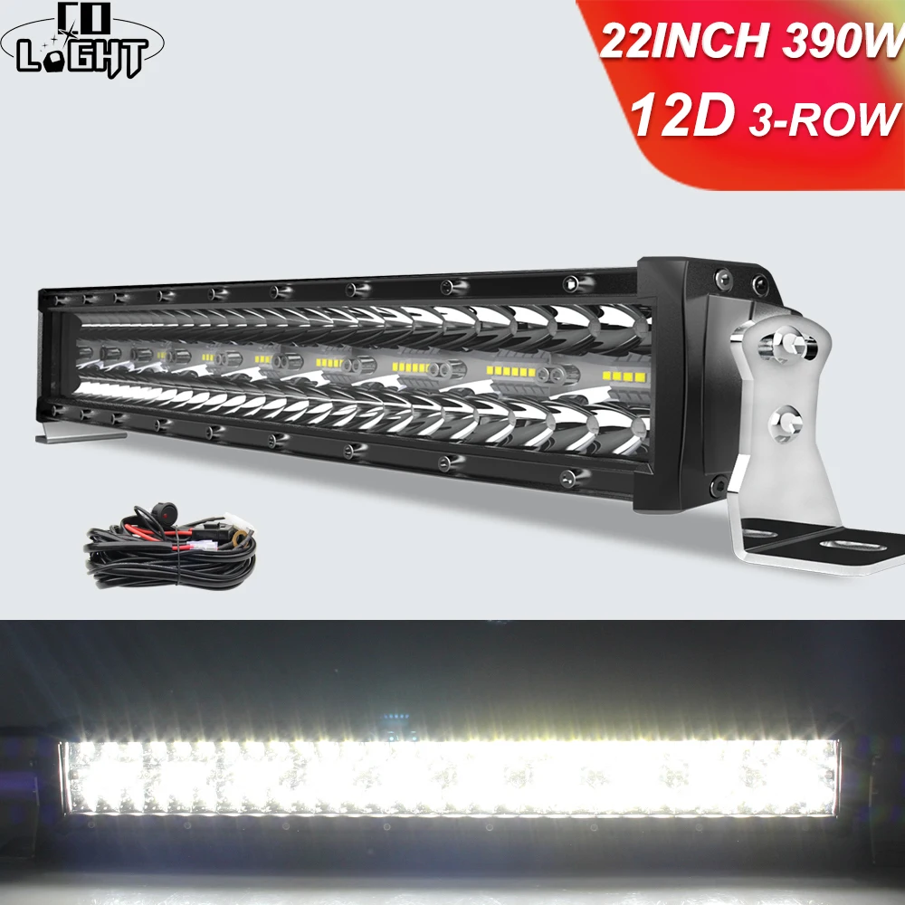 amazing CO LIGHT 12D 3-Row 22 32 42 50 52 inch LED Bar 12V 24V Spot Flood Beam Led Car Driving Light Bar fo
