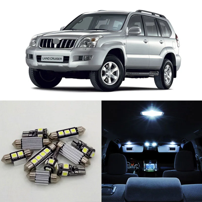 Greatest 14pcs White Car LED Light Bulbs Interior Package Kit For 1998-2002 Toyota Land Cruiser Prado Map Do