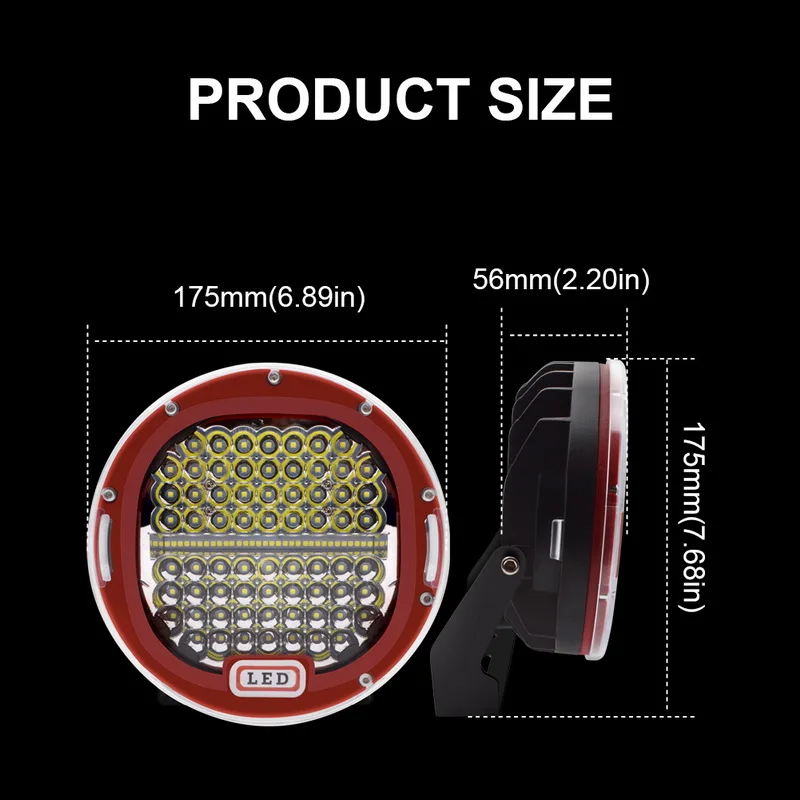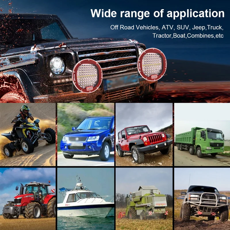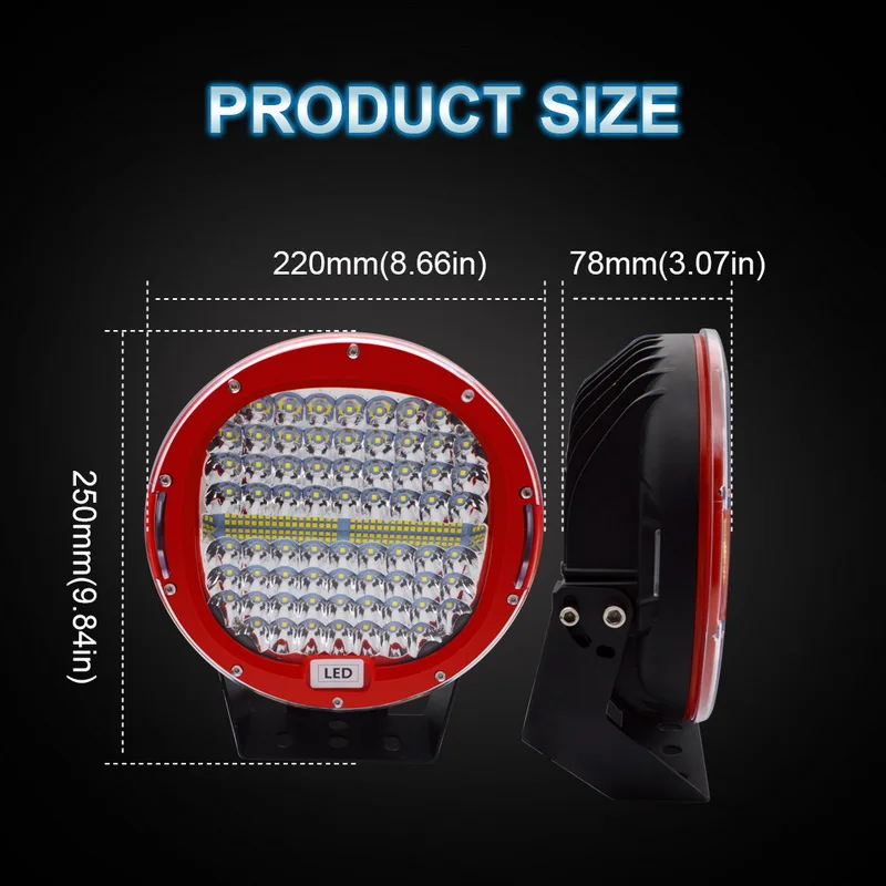 New Safego 2pcs 300W 408W 7" 9" Round LED Work Light Spot Beam Car Driving Fog Lamp Red Black Case for